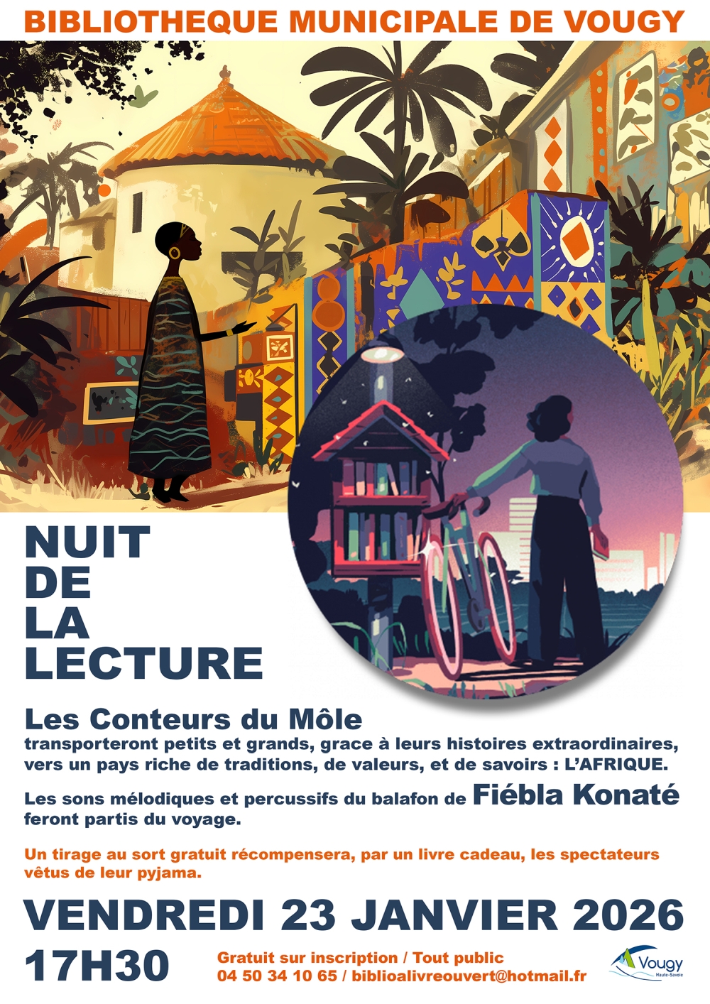 Vendredi 23 janvier à 17h30 à la bibliothèque municipale de Vougy avec les Conteurs du Môle et Fiebla Konaté au balafon.