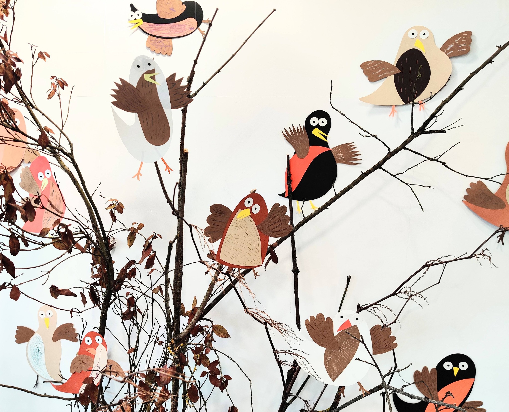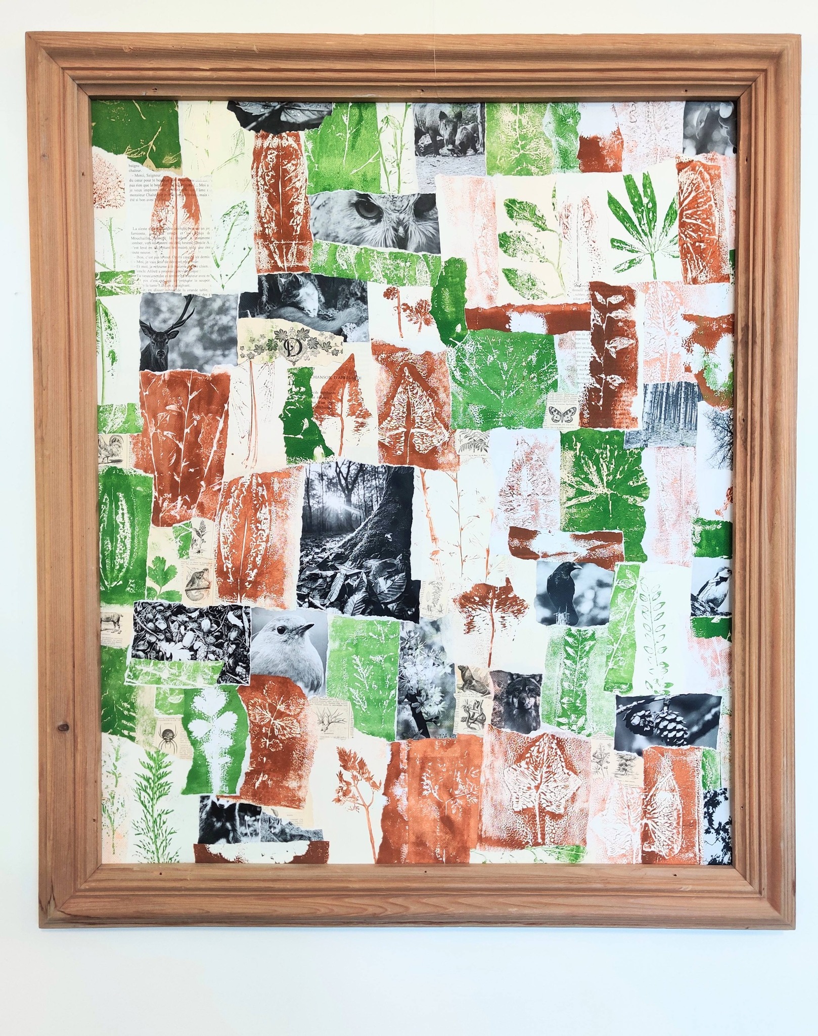 Grande création collective (peinture, estampage et collage) sur le thème de la forêt, réalisée par les élèves de PS, GS-CP et CM2 du groupe scolaire Julia CONSTANTIN de